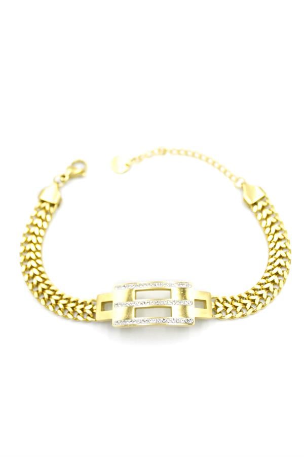 Taşlı Zincir Bileklik - Altın