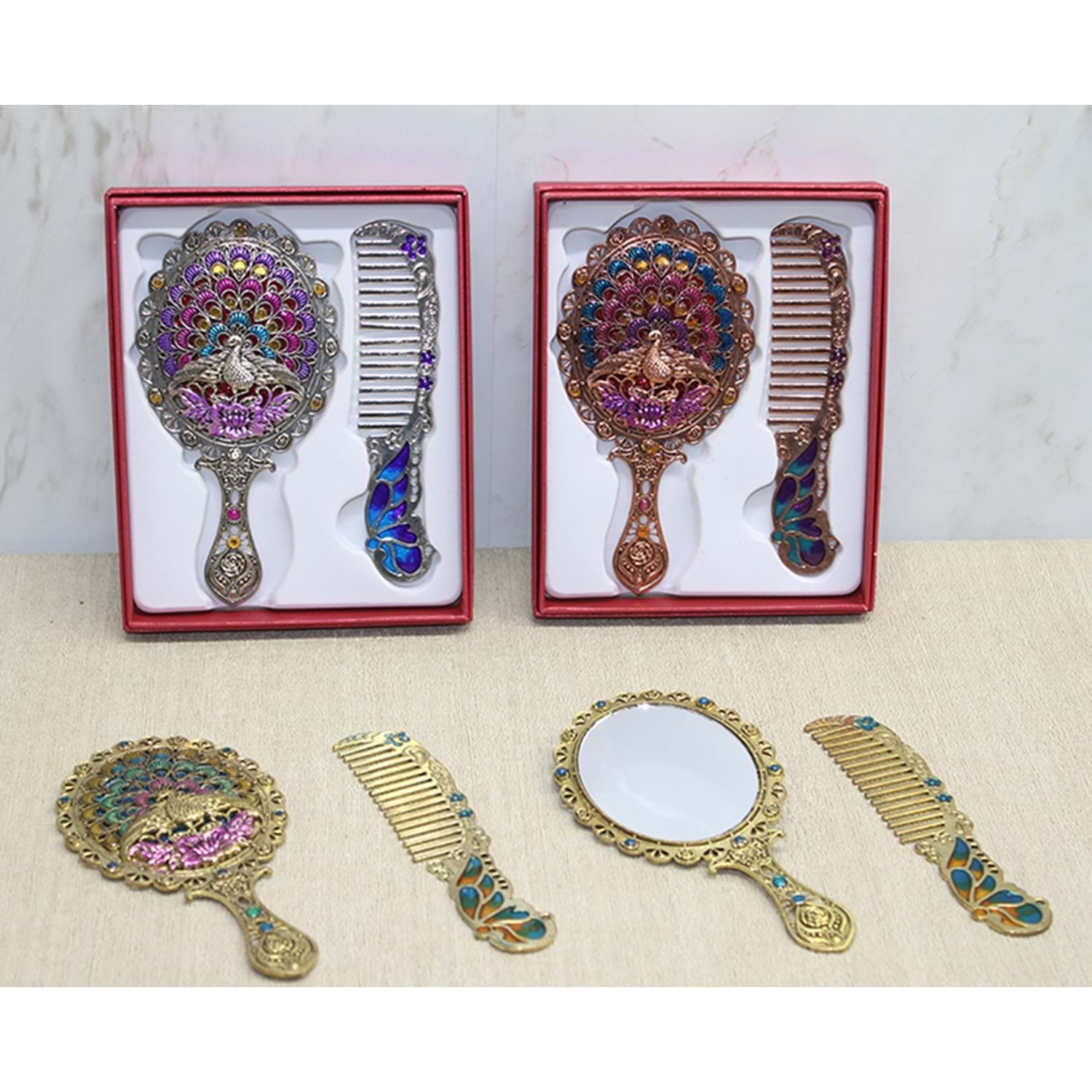 Tavuskuşu Ayna Ve Tarak Seti Küçük Boy