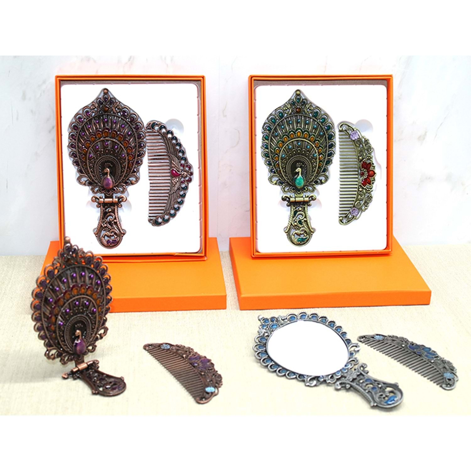 Tavuskuşu Katlanabilir Ayna Ve Tarak Seti Orta Boy