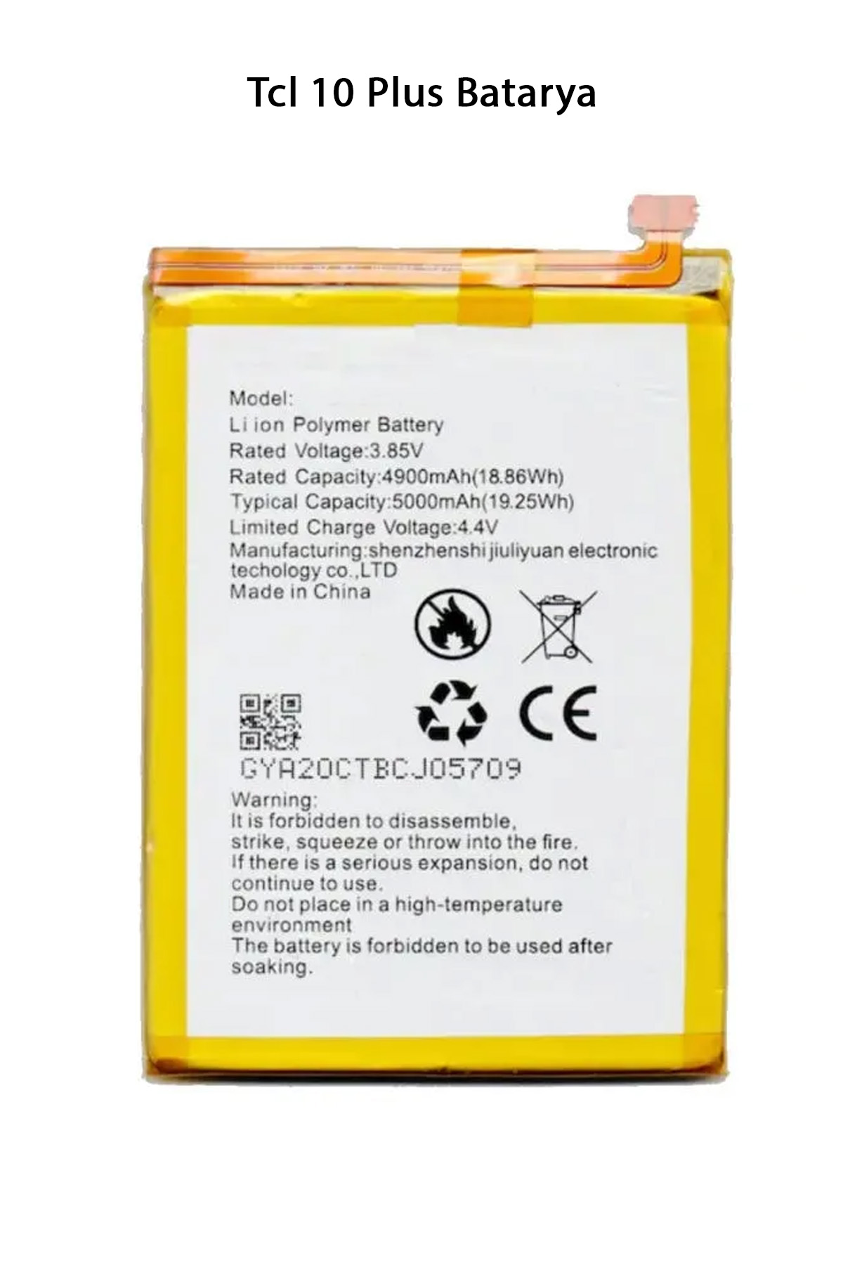 | TCL 10 Plus bataryası, Li-Po 4900 mAh kapasiteli bir bataryadır. Bu batarya, 18W hızlı şarj desteği ile birlikte gelir ve USB-C bağlantı noktası aracılığıyla şarj edilir. Batarya, uzun ömürlü ve günlük kullanıma uygun olarak tasarlanmıştır. Paket İçeriği : 1 Adet Tcl 10 Plus Bataryası |