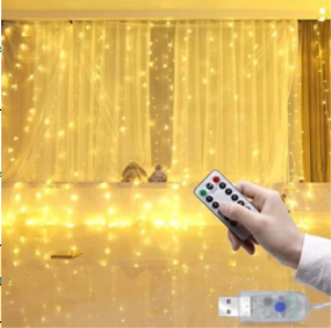 Tel led perde. GÜN IŞIĞI. 3*3 metre 10 saçak Her saçakta 30 adet Led bulunmaktadır. Toplam 300 led. 8 fonksiyon. Uzaktan kumandalı. USB'li .KUTULU