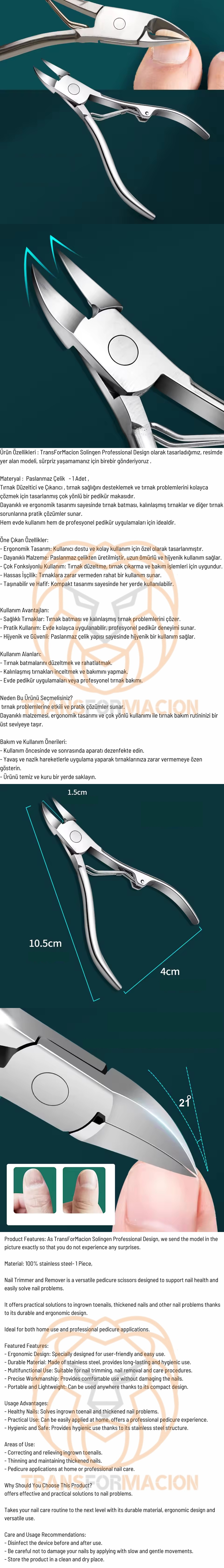 Dayanıklı ve ergonomik tasarımı sayesinde tırnak batması, kalınlaşmış tırnaklar ve diğer tırnak sorunlarına pratik çözümler sunar.