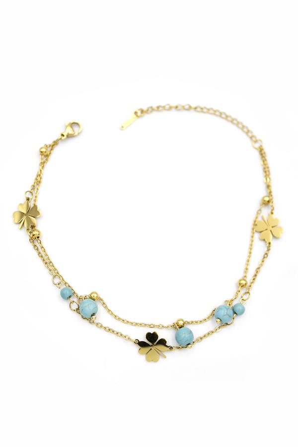 Turkuaz Boncuklu Halhal - Altın