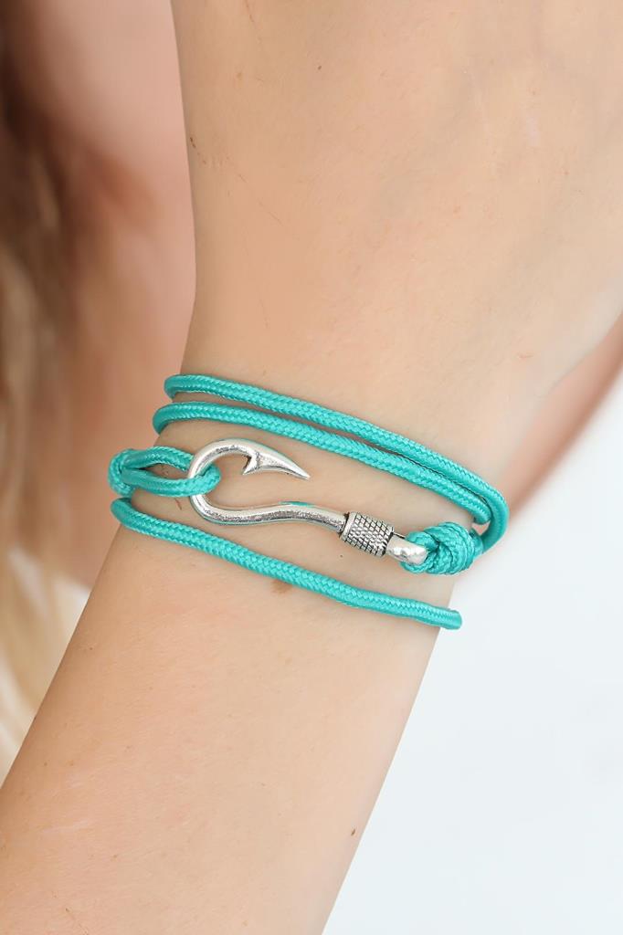 Turkuaz Renk Gümüş Metal Kancalı Bayan Çoklu Bileklik - BB2370-KS