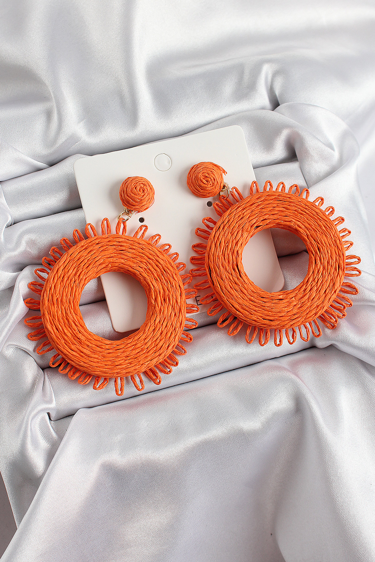 Turuncu Püsküllü Halka Figürlü Hasır Örgü Model Gold Renk Kadın Küpe - TJ-BKP10710