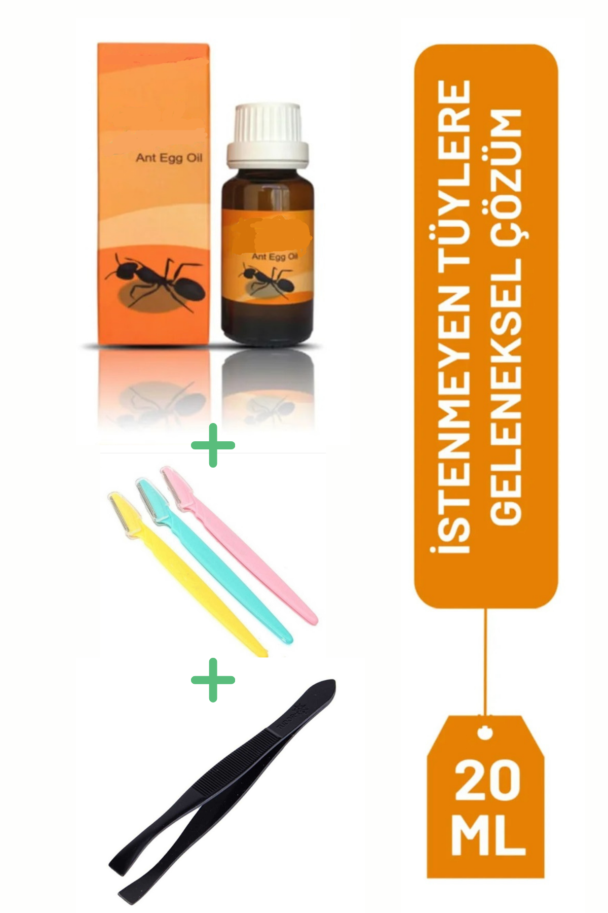 Paket İçeriği: 1 adet 20 ml Karınca Yumurtası Yağı , 1 Adet Profesyonel Çelik Cımbız , 3 Adet Yüz Jileti / Kaş Usturası