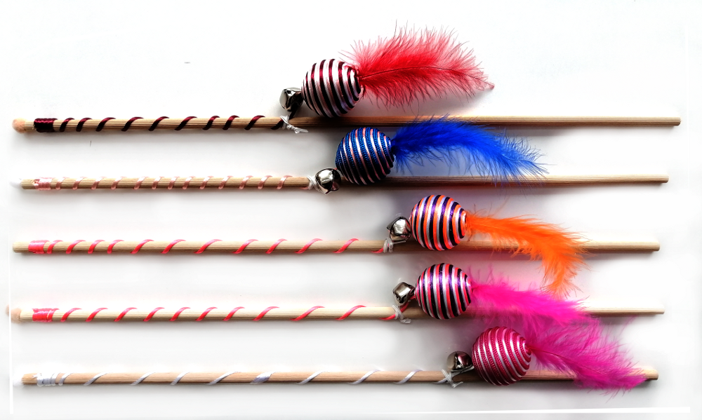 Örgü ipleri canlı renklerdedir ve tüyleri kedinizin vazgeçilmez oyuncağı olacaktır.