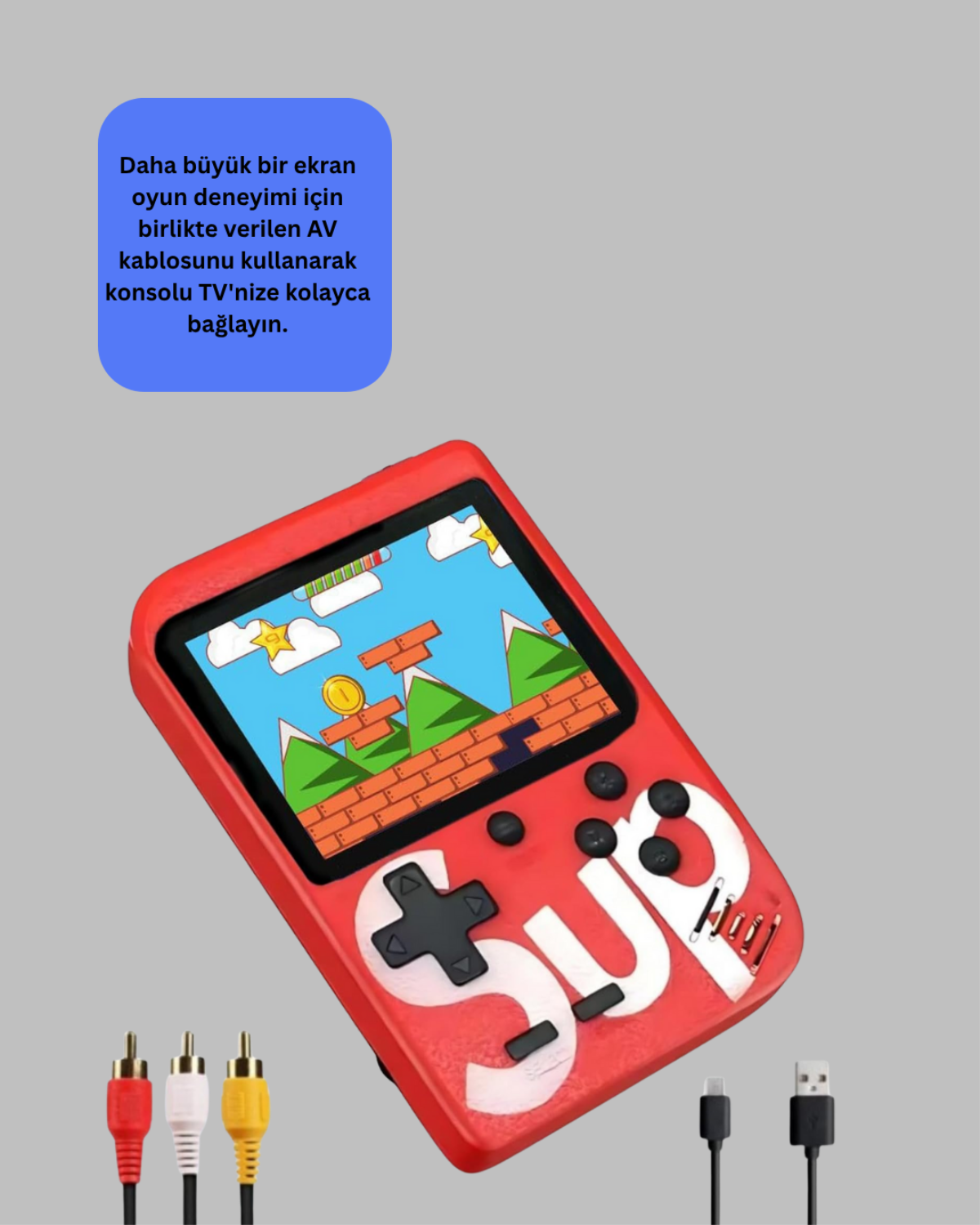 3 inçlik LED ekranıyla net ve kesintisiz bir oyun deneyimi sunarken, sade ve kullanıcı dostu tuş takımı ile hem çocuklar hem de yetişkinler kolayca kullanabilir. AV kablosu ile televizyona bağlayarak arkadaşlarınızla birlikte oynayabilirsiniz.