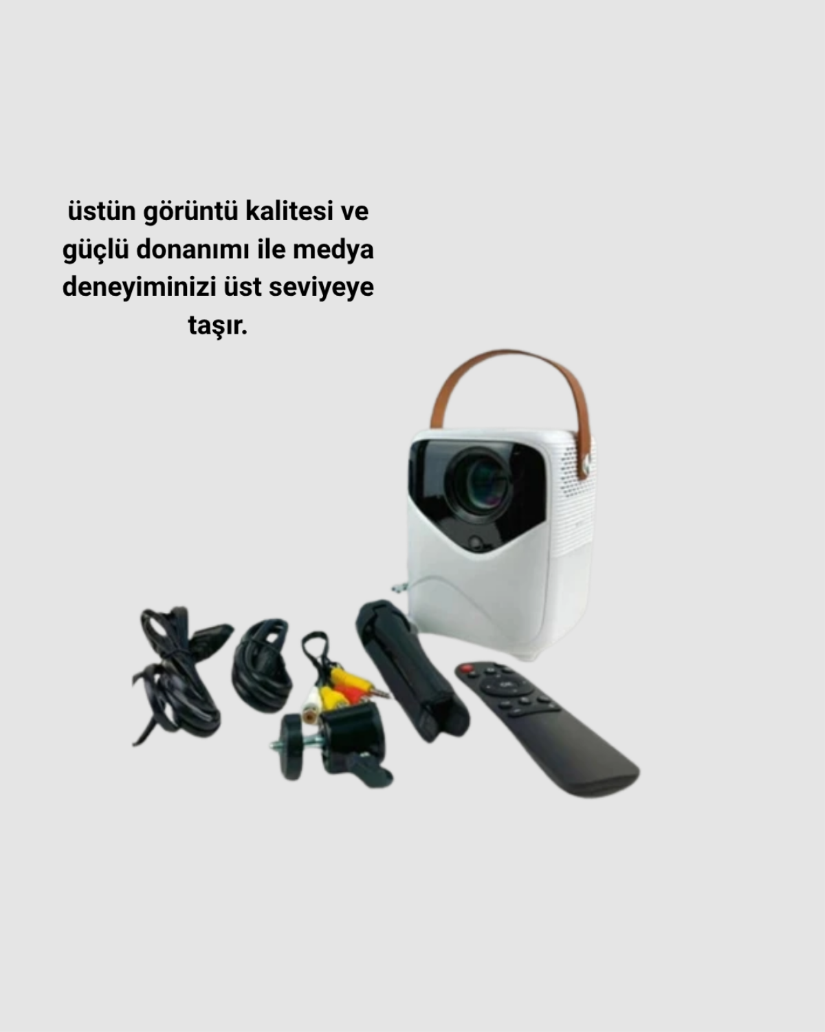 Sadece 750 gramlık kompakt ve hafif tasarımıyla kolay taşınabilir oluşu, seyahatlerde ve farklı odalarda kullanım için büyük avantaj sağlar. Kumanda desteği ise cihazı uzaktan kolayca kontrol etmenizi sağlar. Kutu içeriğinde HDMI kablosu, tripod, kumanda ve kullanım kılavuzu bulunur.