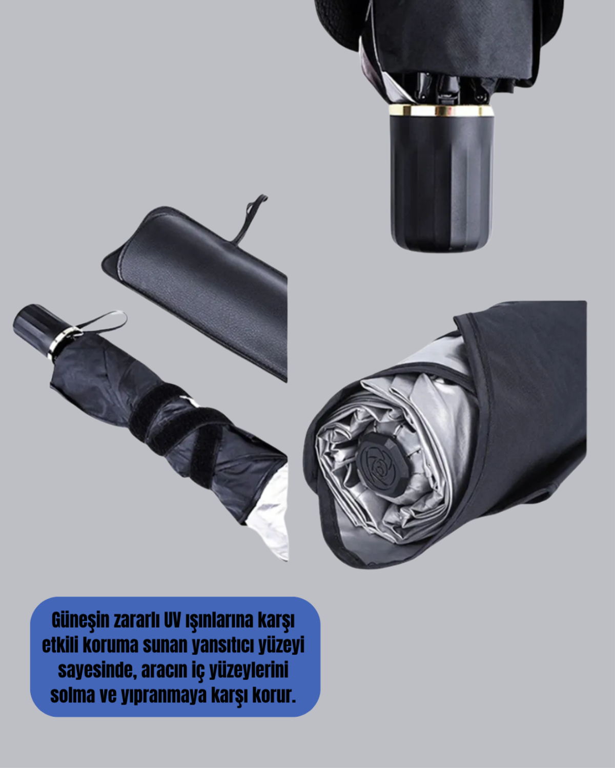 Yeni nesil katlanabilir güneşlik, 125x65 cm boyutları sayesinde farklı araç tiplerine uygundur. Sedan, hatchback ve SUV’larda güvenle kullanılabilir. Geniş yüzeyiyle ön camı tamamen kapatarak maksimum koruma sağlar.