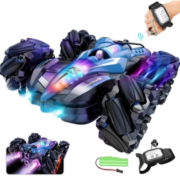 Uzaktan Kumandalı Akrobat Araba, hem klasik kumanda hem de bileğe takılan hareket algılayıcı kontrol sistemi sayesinde çocuklara ve yetişkinlere eğlence dolu bir sürüş deneyimi sunar. Bilekten kontrol özelliği sayesinde el hareketleriyle yönlendirme yapılabilir ve bu da oyunu çok daha gerçekçi ve interaktif hale getirir. Güçlü motor yapısı ile zorlu zeminlerde dahi yüksek performans göstererek ileri, geri, sağ, sol hareketlerin yanı sıra takla atma ve dönüş gibi akrobatik hareketleri kolaylıkla gerçekleştirir.