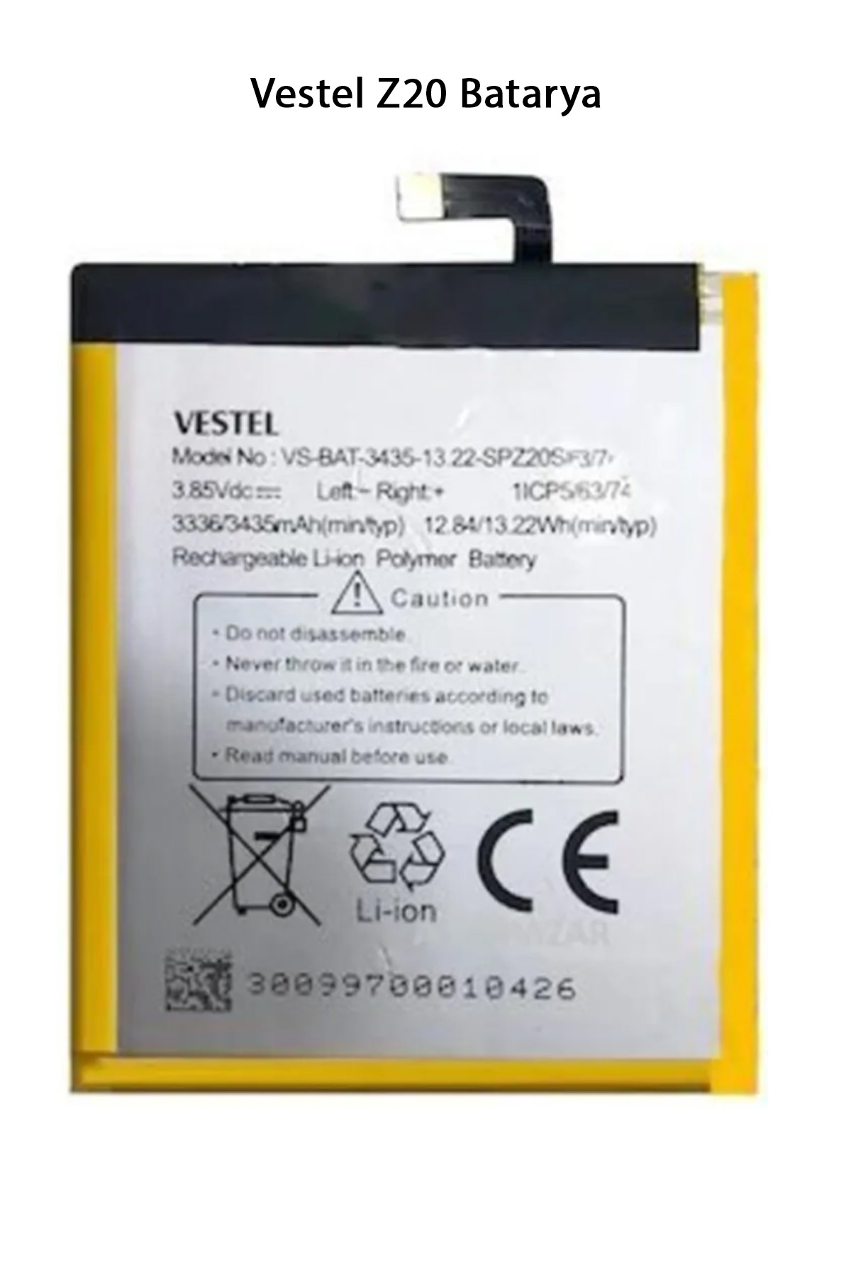 | Vestel Z20 modeli için batarya özellikleri şunlardır: Pil kapasitesi: 3435 mAh Pil teknolojisi: Li-Po Şarj süresi: 2 saat Bekleme süresi: 400 saat Konuşma süresi: 14 saat Paket İçeriği : 1 Adet Vestel Z20 Batarya |