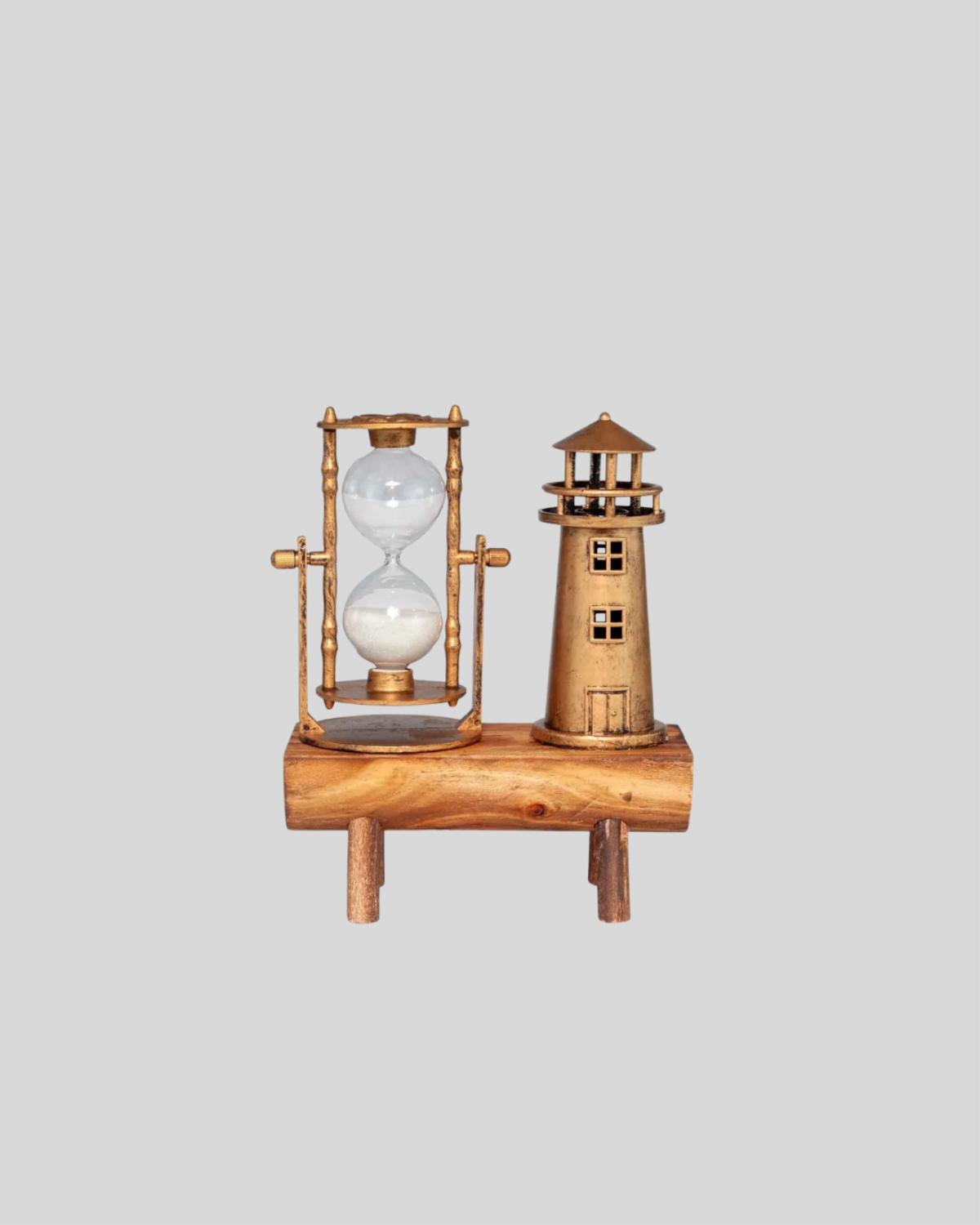Vintage Kum Saati + Deniz Feneri Modeli – Ahşap Gövdeli Masa Üstü Dekor