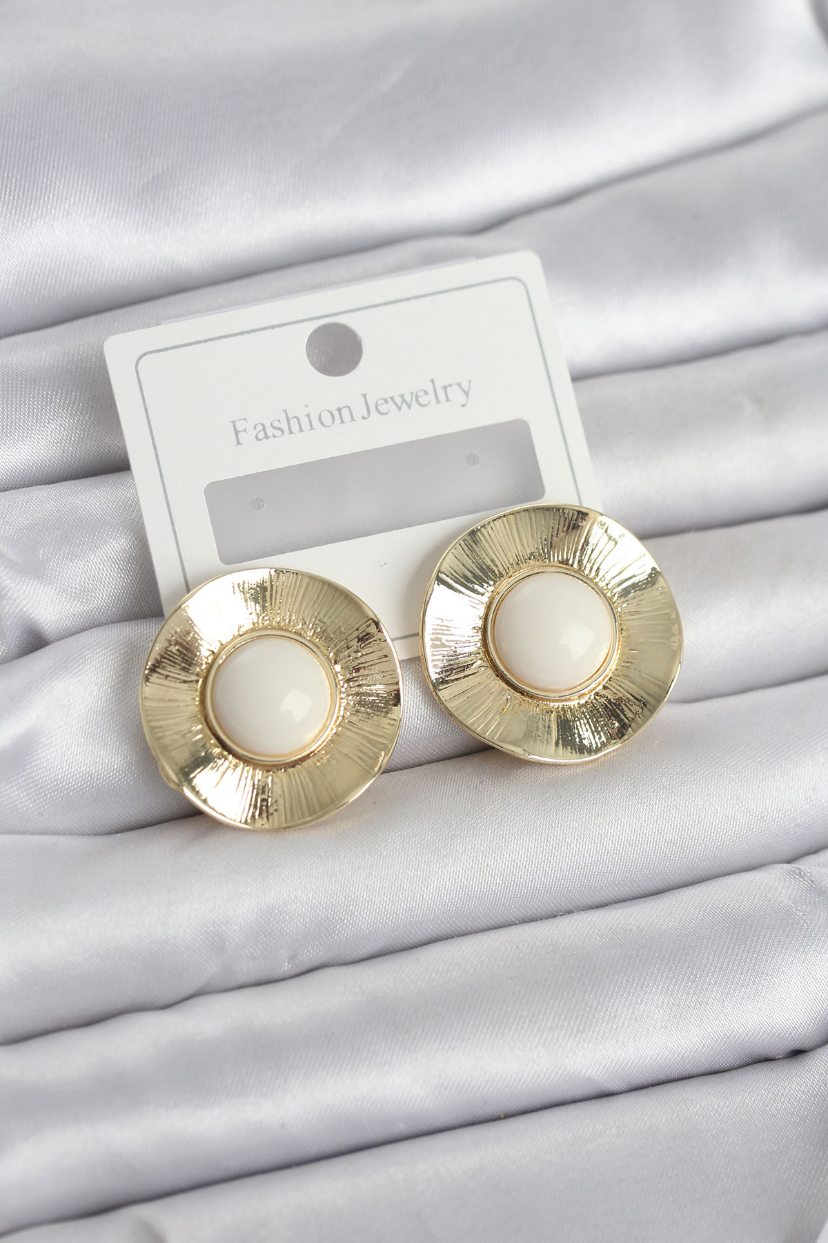 Vintage Model Beyaz Gold Renk Pirinç Kadın Küpe - TJ-BKP11665