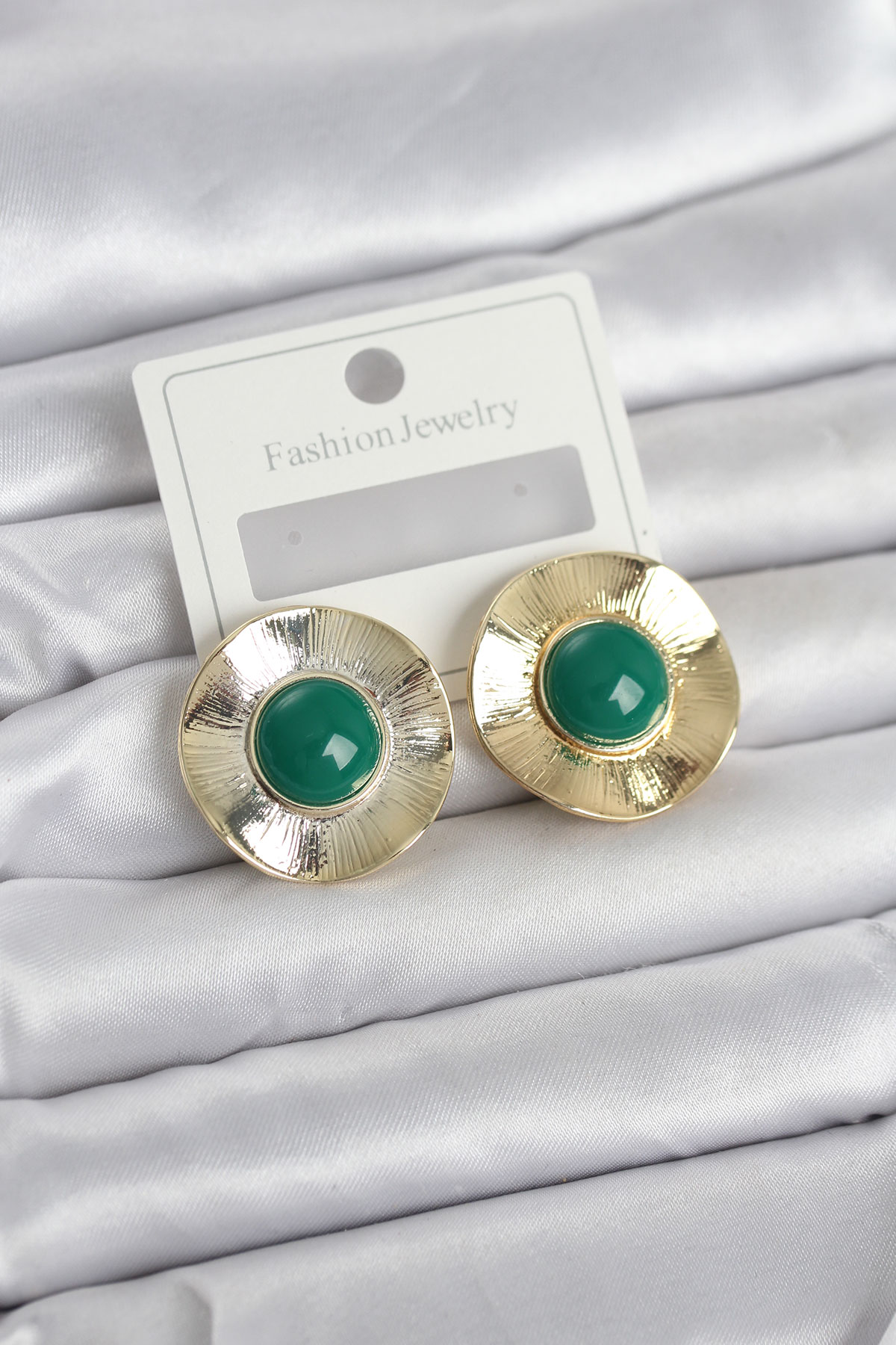 Vintage Model Yeşil Gold Renk Pirinç Kadın Küpe - TJ-BKP11664