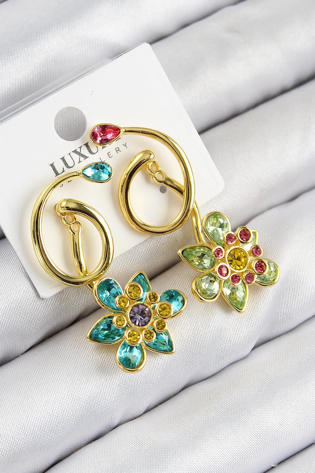 VIP Pirinç Zirkon Taşlı Çiçek Model Gold Renk Kadın Küpe - BKP11117