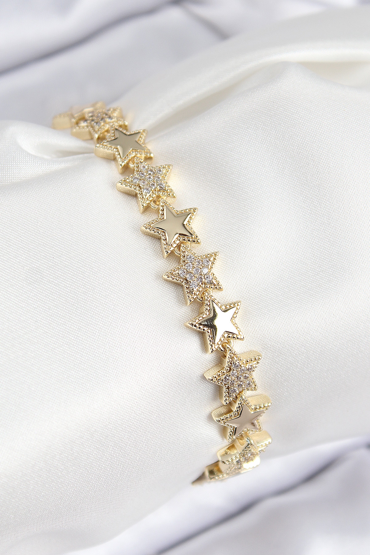 VIP Pirinç Zirkon Taşlı Yıldız Model Gold Renk Kadın Bileklik - TJ-BB7768
