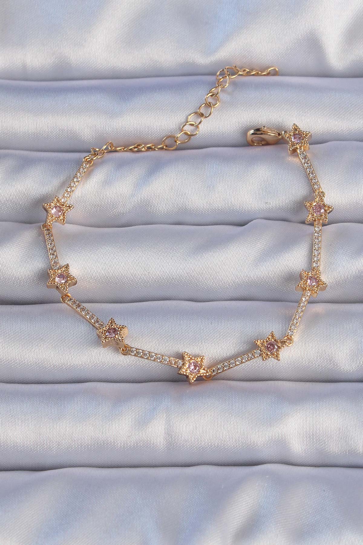Vip Seri Pirinç Altın Renk Zirkon Taşlı Yıldız Model Bileklik - TJ-BB6299