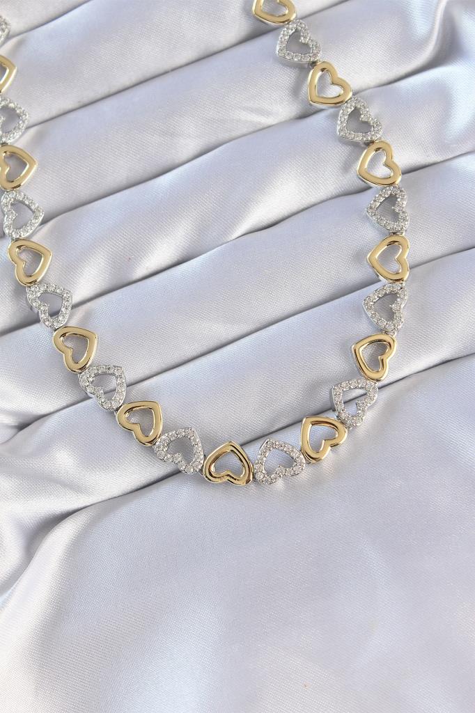 Vip Seri Pirinç Çift Renk Zirkon Taşlı İçi Boş Kalp Tasarımlı Kolye - TJ-BKO8870
