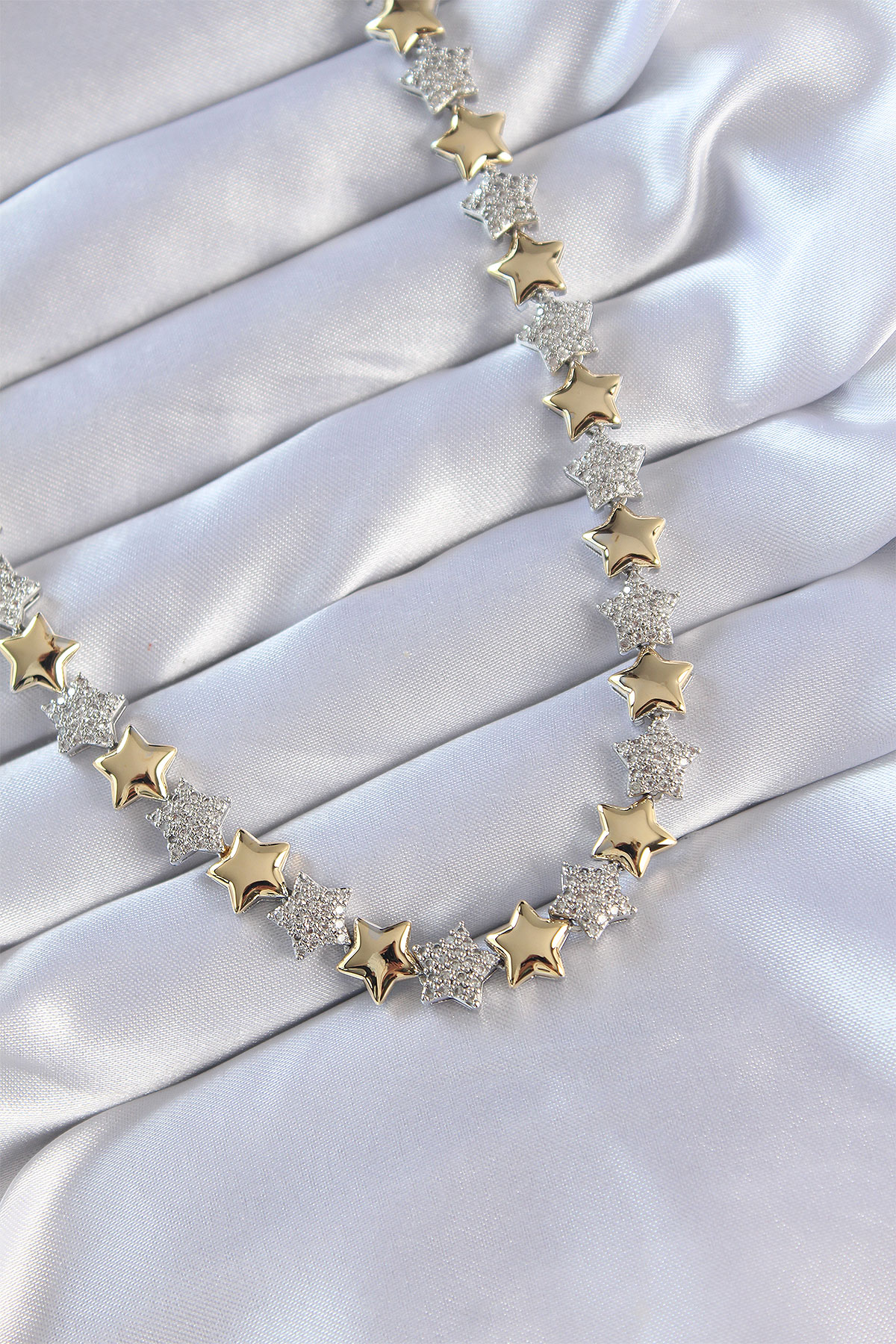 Vip Seri Pirinç Çift Renk Zirkon Taşlı Yıldız Tasarımlı Kolye - TJ-BKO8871