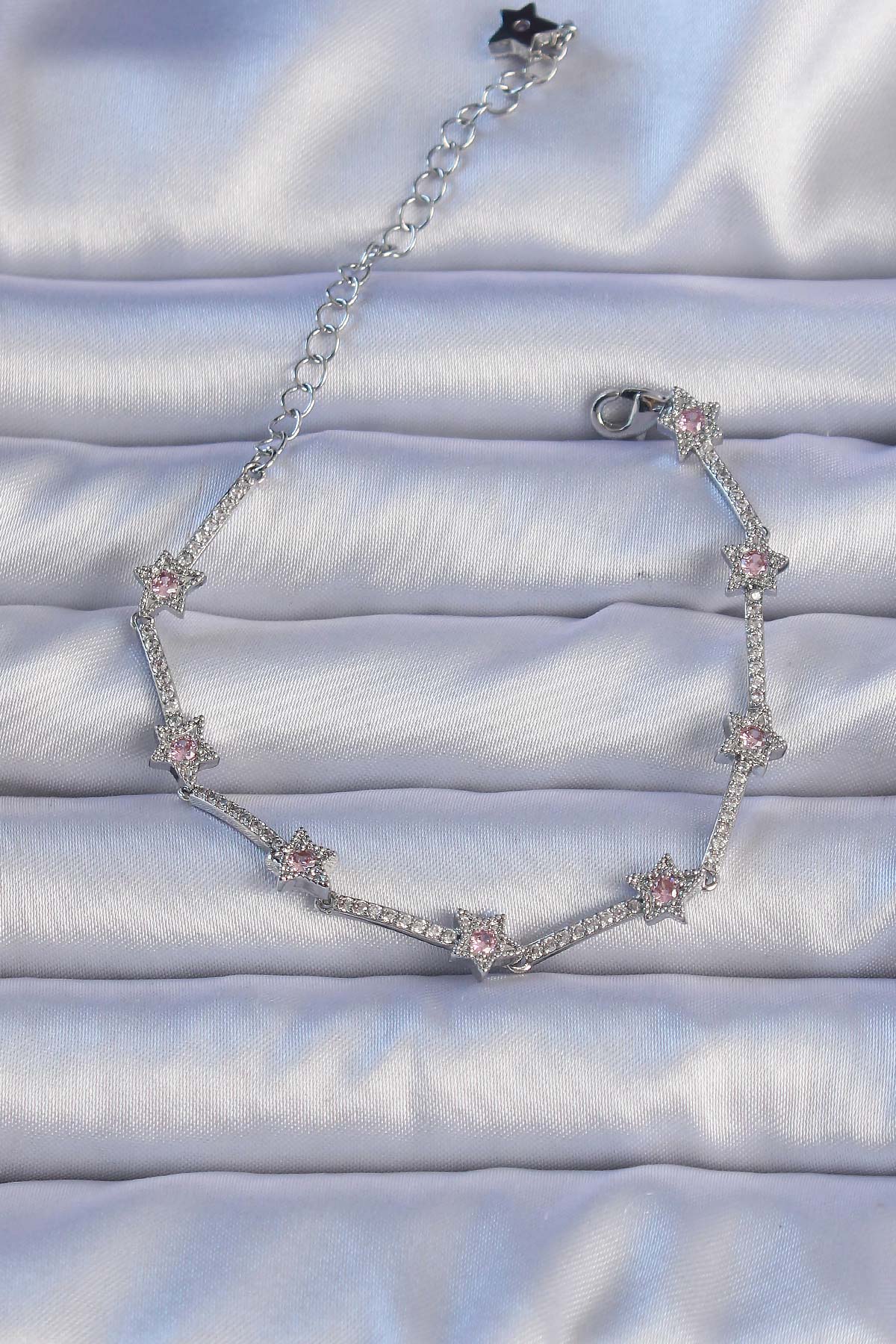 Vip Seri Pirinç Gümüş Renk Zirkon Taşlı Yıldız Model Bileklik - TJ-BB6300