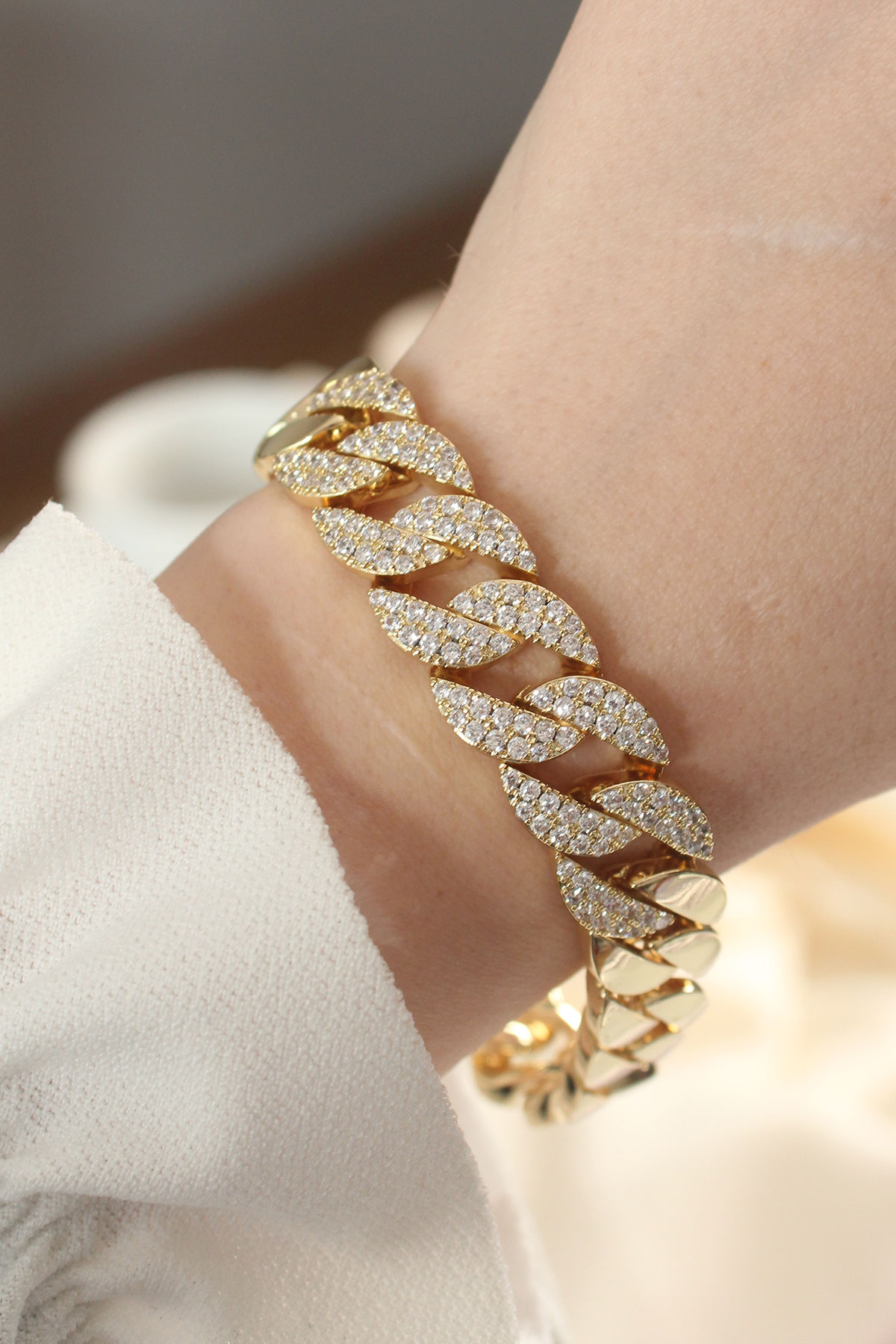 Vip Seri Pirinç Ortası Zirkon Taşlı Gold Renk Gurmet Bileklik - TJ-BB6048