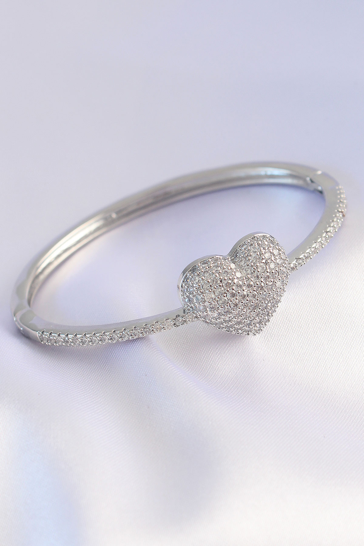 Vip Seri Pirinç Zirkon Taşlı Gümüş Renk Kalp Model Kelepçe - TJ-BB6082