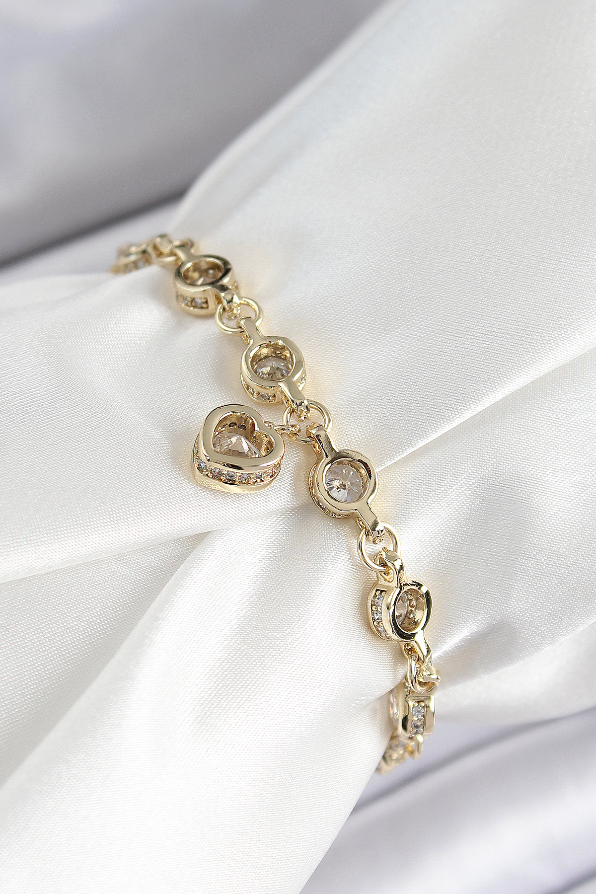 Xuping Pirinç Zirkon Taşlı Sallantılı Kalp Model Gold Renk Kadın Bileklik - TJ-BB7475