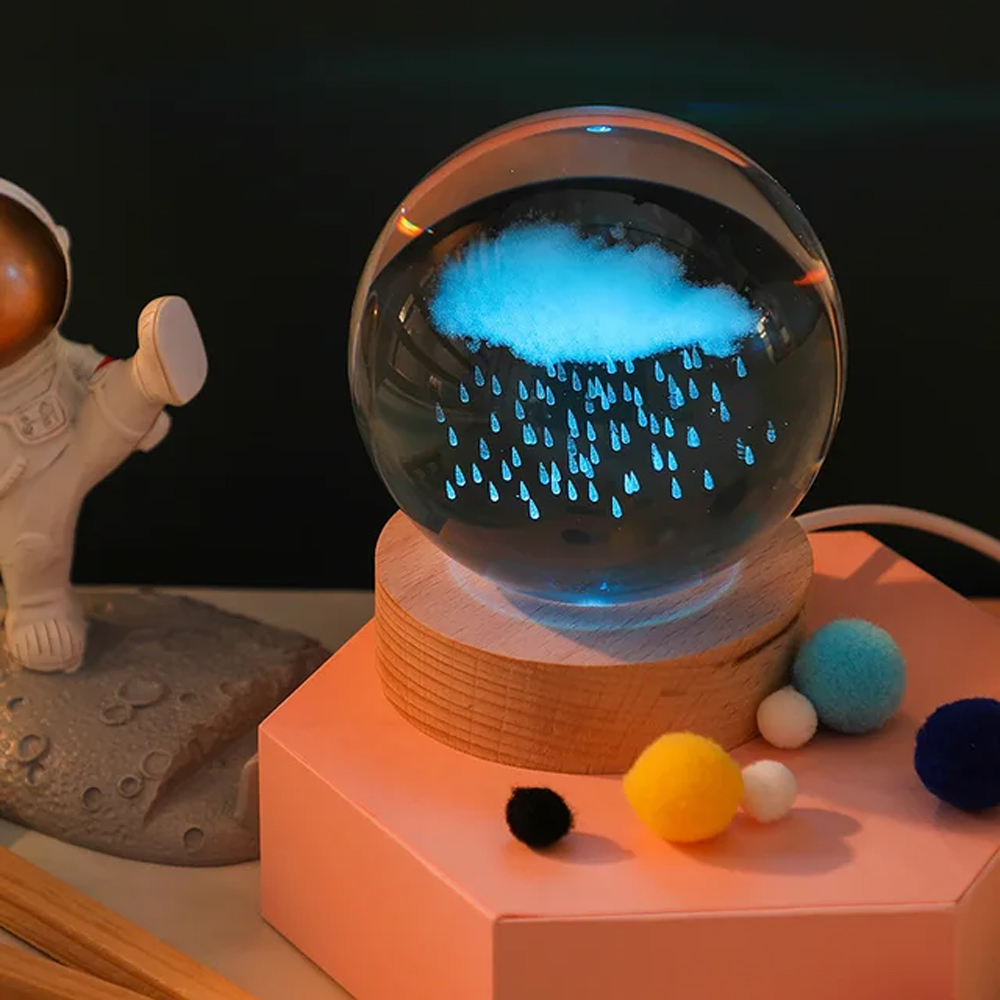 Ahşap Altlıklı Renk Değiştiren Cam Küre