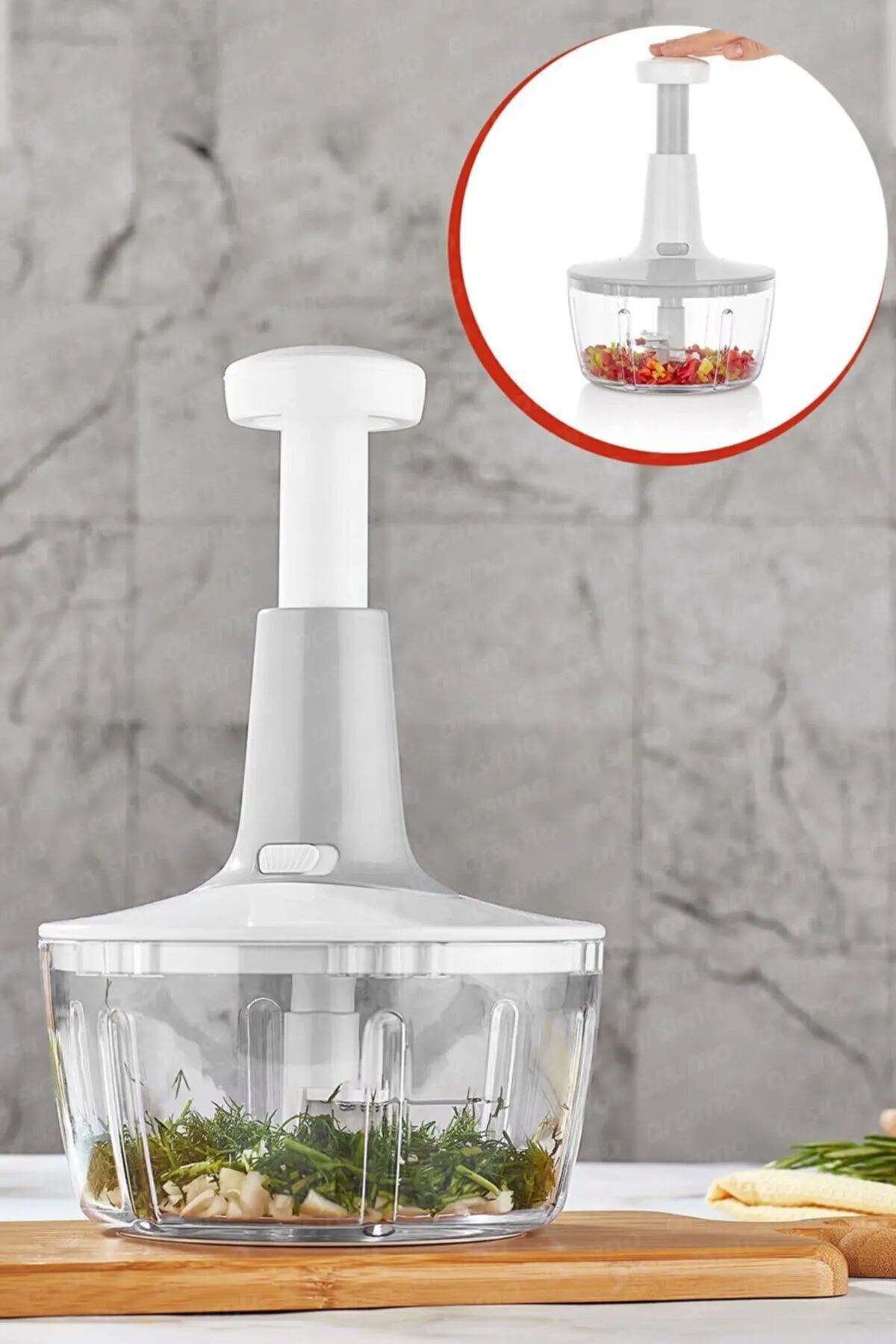 Bu sayede, basit bir hareketle malzemelerinizi hızlıca doğrayabilir ve yemek hazırlıklarınızı