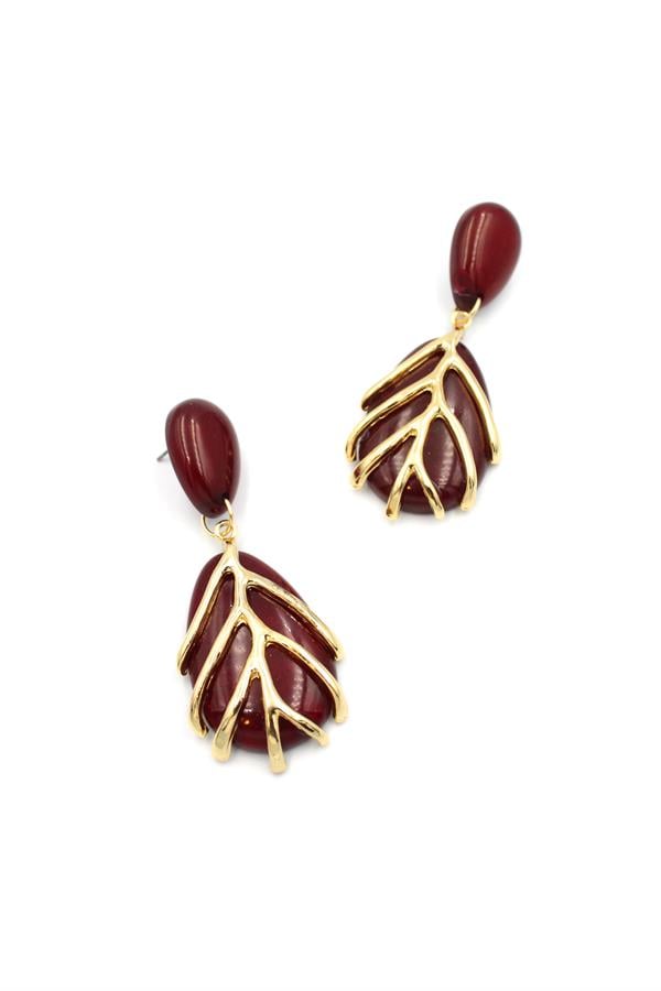 Yaprak Küpe - Bordo