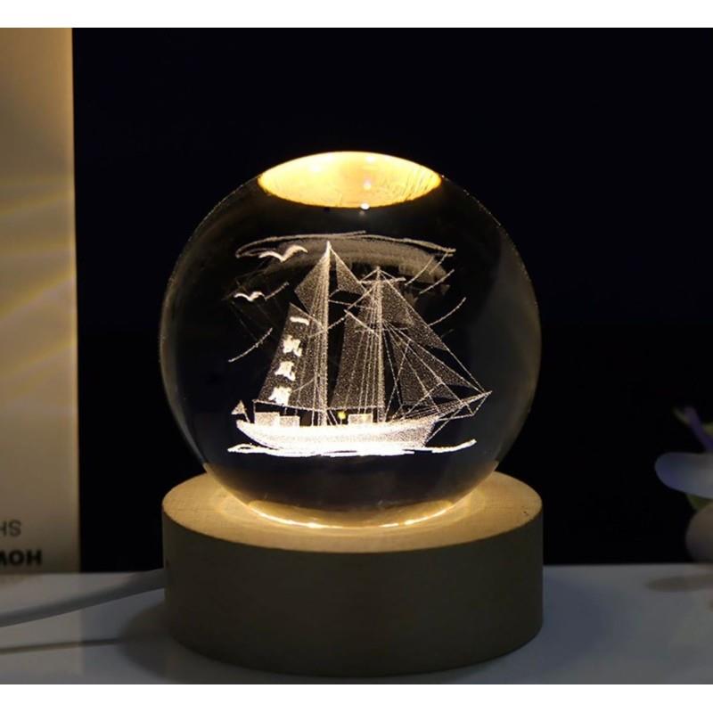 Yelkenli Gemi Renk Değiştiren Işıklı Cam Küre 8cm