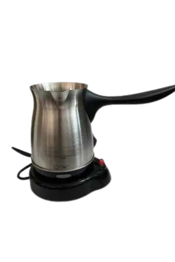 Bu elektrikli cezve, 800 watt gücüyle yüksek performans sağlar ve mükemmel Türk kahvesi deneyimi sunar. 360 ml kapasitesi ile 6 fincana kadar kahve hazırlayabilirsiniz, böylece kalabalık misafirlerinize veya büyük aile yemeklerinde kolayca kahve ikram edebilirsiniz. Gizli rezistans teknolojisi, hızlı ısınma ve güvenli kullanım sağlar, ayrıca temizlik açısından da büyük kolaylık sunar.360 derece dönebilen kablosuz tabanı, rahat bir kullanım sağlar ve her açıdan kolayca hareket etmenize olanak tanır. Paslanmaz çelik gövdesi, hem dayanıklı hem de estetik açıdan şık bir görünüm sunar. Kolayca temizlenebilen tasarımı, hijyenik bir kullanım imkanı tanır ve her seferinde taze kahve hazırlamanızı sağlar.Cezvenin üzerinde bulunan kırmızı güç düğmesi ile açma ve kapama işlemleri son derece basittir. Isınmayan ergonomik kulpu ise güvenli ve rahat bir tutuş sağlar. Paslanmaz çelik yapısı, uzun ömürlü kullanım ve şık bir tasarım sunarak mutfağınıza zarif bir dokunuş katar.Bu elektrikli cezve, Türk kahvesi sevenler için mükemmel bir seçimdir. Hem işlevsel hem de estetik özellikleriyle kahve hazırlama deneyiminizi daha pratik ve keyifli hale getirir. 6 fincana kadar kapasitesiyle geniş aileler ve misafirler için ideal bir yardımcıdır.