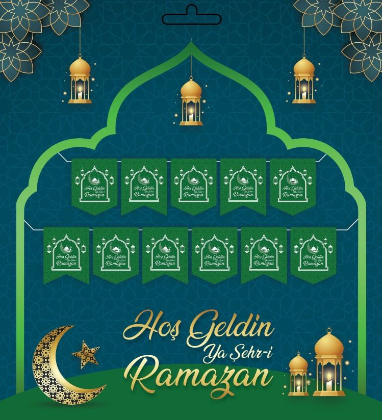 Yeşil Renk Hoşgeldin Ya Şehr-i Ramazan Yazılı Banner Ramazan Süslemesi 230 cm