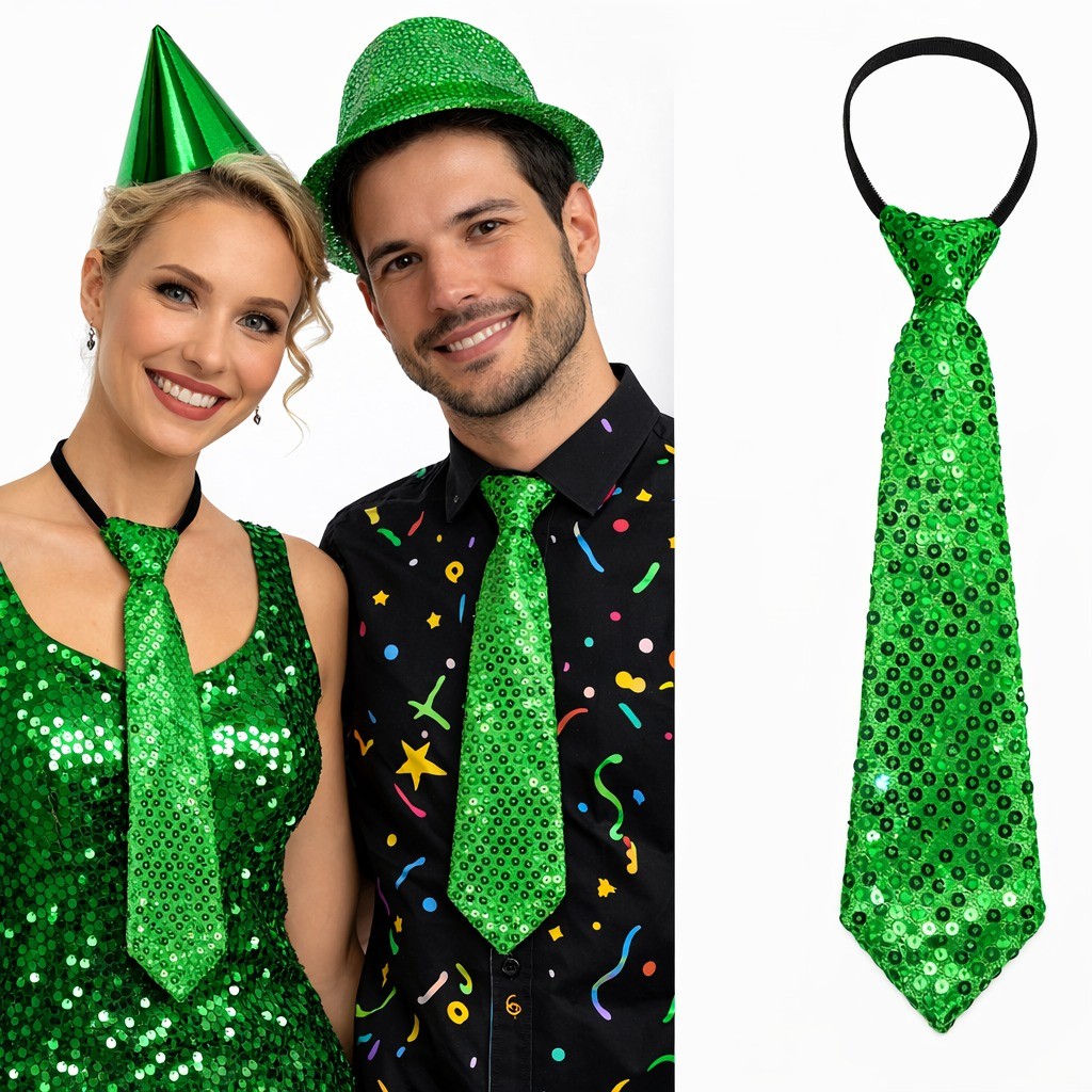 Yeşil payetli fermuarlı parti kravatı; doğum günü organizasyonları, sahne performansları,disko geceleri ve temalı partiler için tasarlanmıştır. Yoğun payet kaplaması sayesinde ışığı güçlü şekilde yansıtır ve bulunduğunuz ortamda dikkat çekici bir görünüm sağlar.