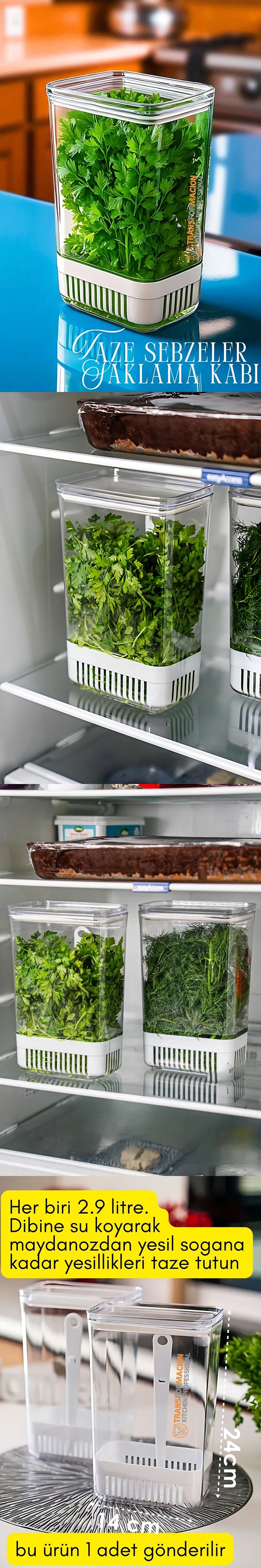 ???? 2900 ml Yeşillik Saklama Kabı – 1 adet Süper Tazelik & Buzdolabı Düzeni