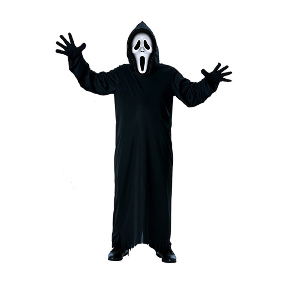Yetişkin Boy Çığlık Kostümü Siyah Renk ve Çığlık Maskesi Seti