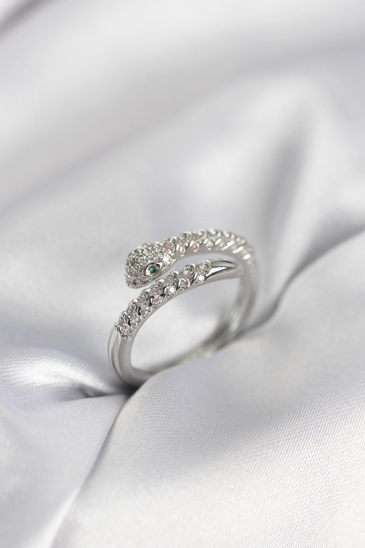 Yılan Model Gümüş Renk Zirkon Taşlı Kadın Yüzük - TJ-BYK3990