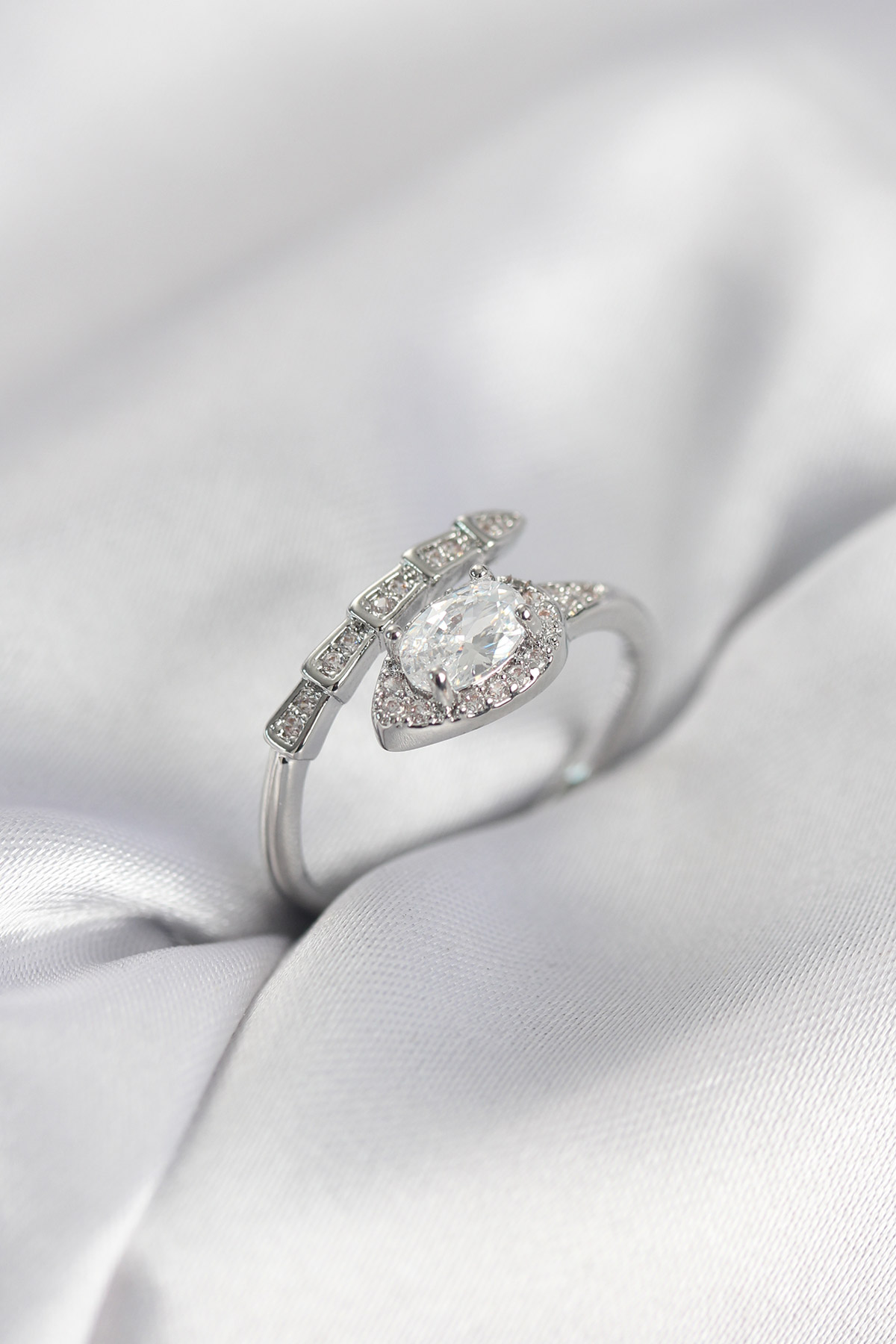 Yılan Model Gümüş Renk Zirkon Taşlı Kadın Yüzük - TJ-BYK4012