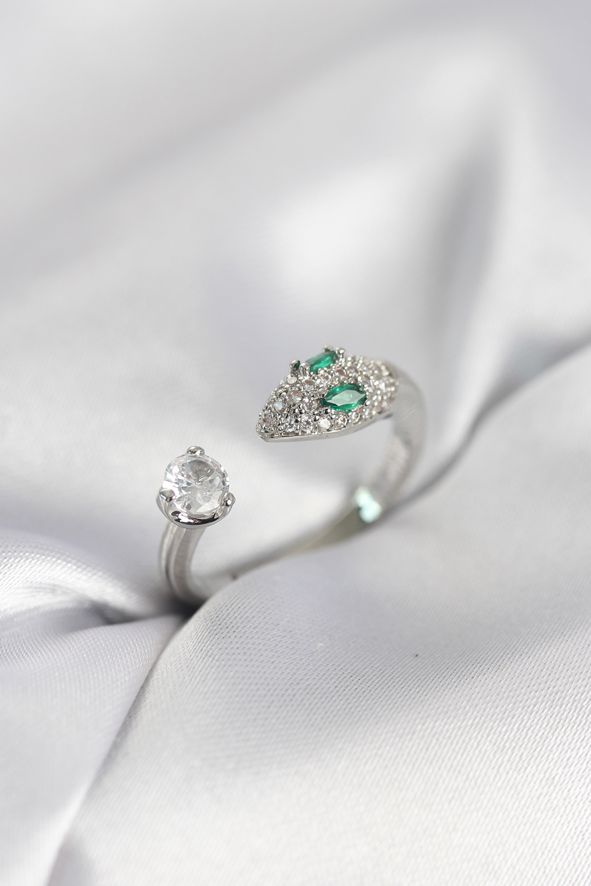 Yılan Model Zirkon Taşlı Gümüş Renk Kadın Yüzük - TJ-BYK4079