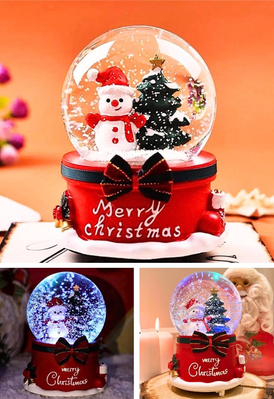 Yılbaşı Kardan Adam 13 cm Orta Boy Işıklı Müzikli Kar Küresi 20A