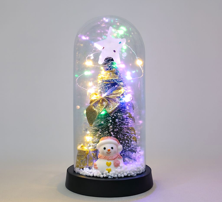 Yılbaşı Temalı Işıklı Dekoratif Cam Fanus