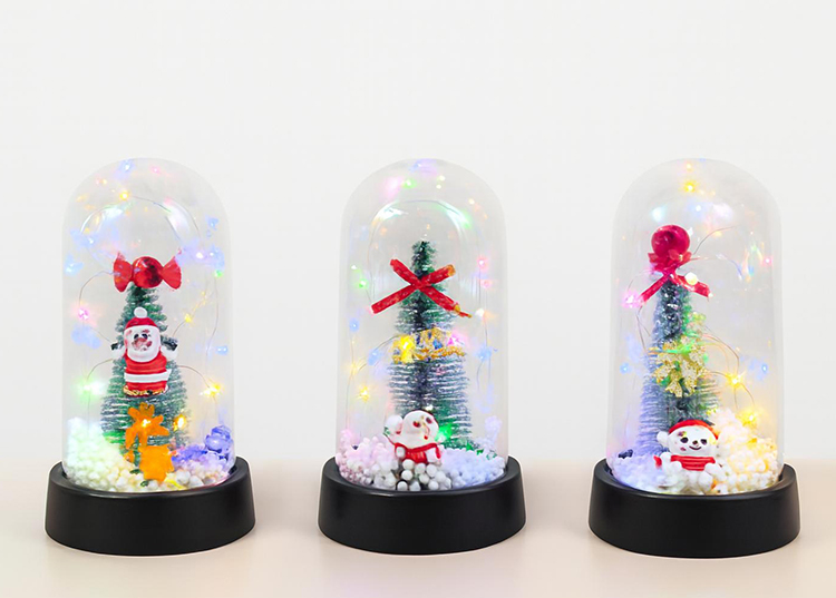 Yılbaşı Temalı Işıklı Dekoratif Cam Fanus