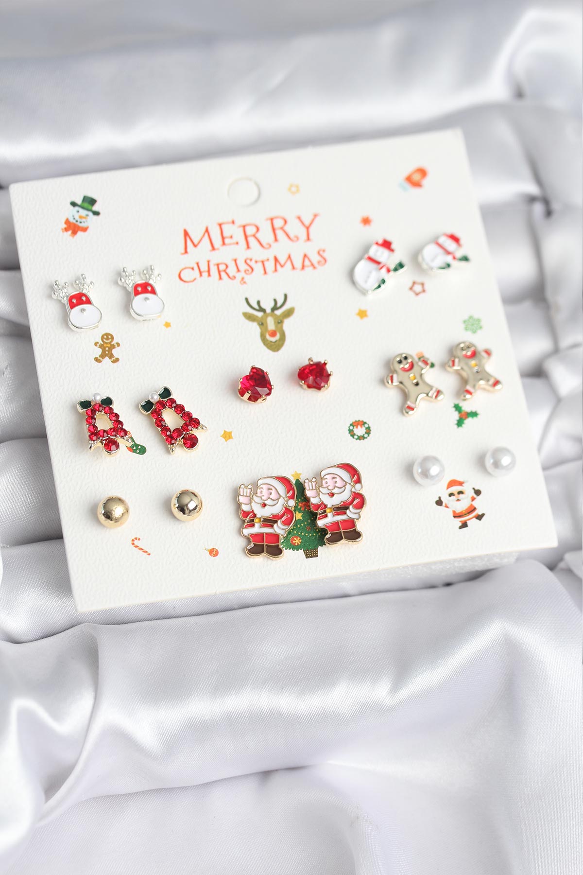 Yılbaşı Temalı Karışık Model 8 Çift Yılbaşı Temalı Kadın Küpe Seti - TJ-BKP11399