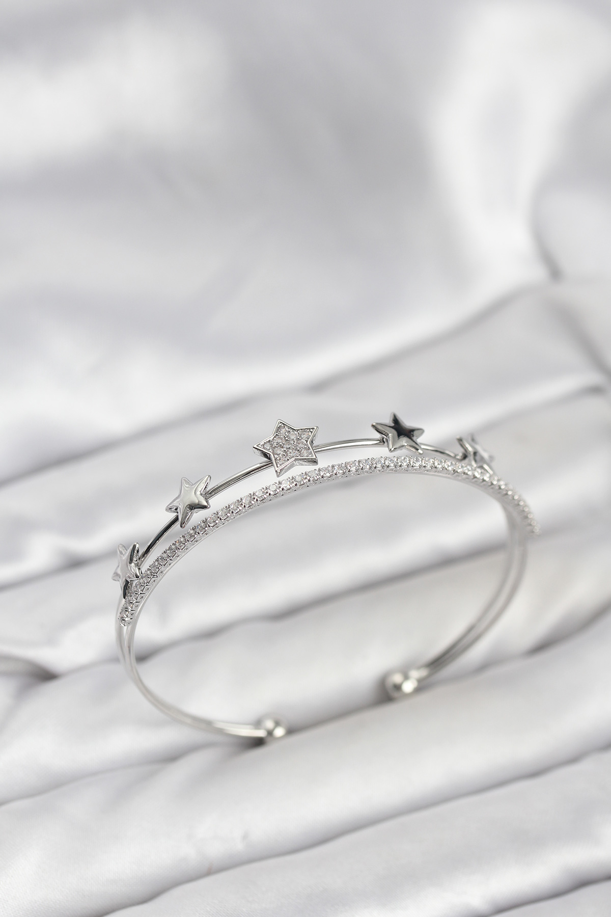Yıldız Model Gümüş Renk Pirinç Kadın Bileklik - TJ-BB8248