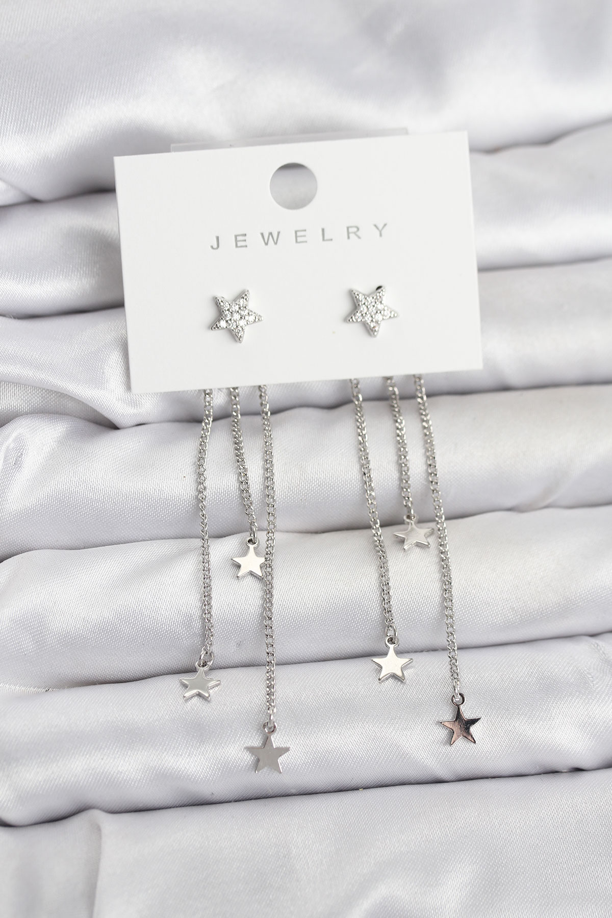 Yıldız Model Gümüş Renk Pirinç Sallantılı Kadın Küpe - TJ-BKP11462