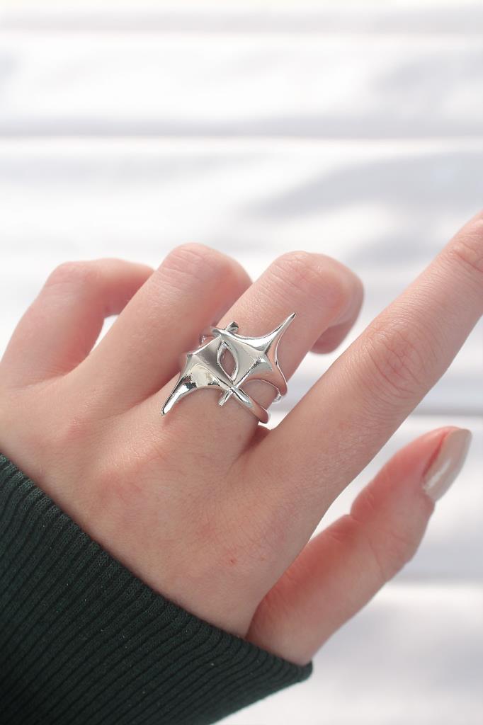 Yıldız Model Silver Renk Ayarlanabilir Yüzük - TJ-BYK3143