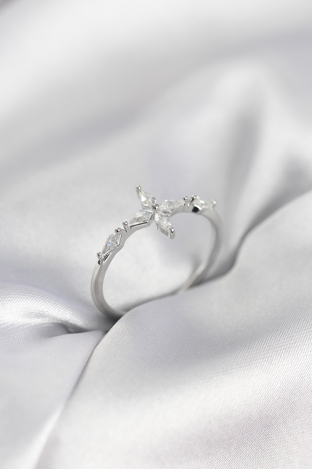 Yıldız Model Zirkon Taşlı Gümüş Renk Kadın Yüzük - TJ-BYK3974