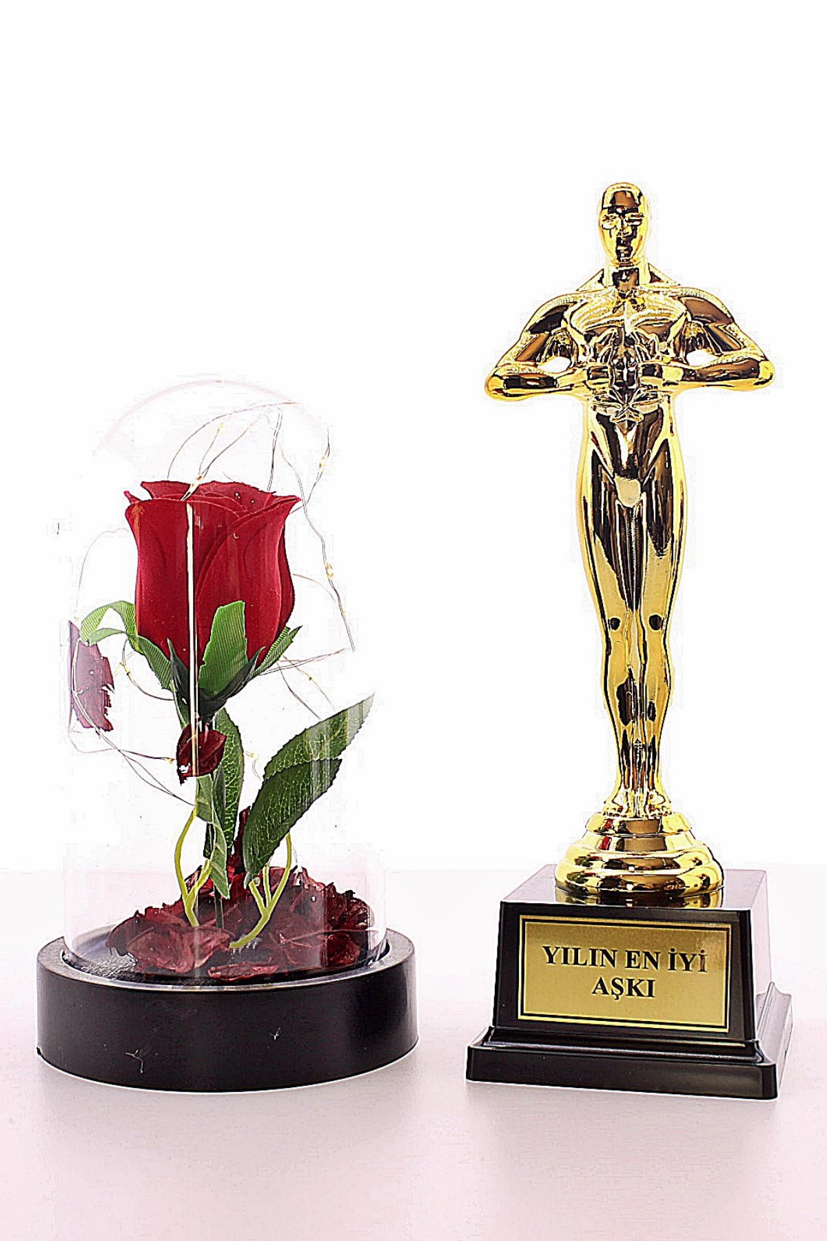 Siparişinizle birlikte 1 adet Oscar Ödül ve Led Işıklı Fanus Gül gönderimi yapılacaktır.