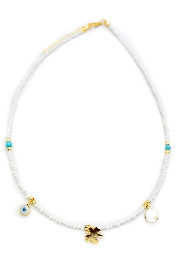 Yonca Boncuk Kolye - Beyaz